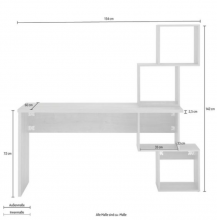 Kombimöbel im extravaganten Design: Der Schreibtisch mit viel Stauraum ist Tisch und Regal in einem. Beide Elemente sind stilvoll miteinander kombiniert. Denn das Regalelement ist gleichzeitig das eine Tischbein. Du hast zudem die Wahl zwischen zwei Farbvarianten, sodass du den Tisch passend zu den restlichen Möbeln auswählen kannst. Die breite Tischplatte bietet dir viel Platz für Computer, Unterlagen und Ordner. Die offenen Ablagefächer sorgen für Ordnung in deinen Unterlagen. Du kannst den Arbeitsplatz sowohl im Homeoffice als auch im Jugendzimmer nutzen. Der Tisch kann auch als Raumteiler verwendet werden. Passt zu unterschiedlichen Wohnkonzepten.